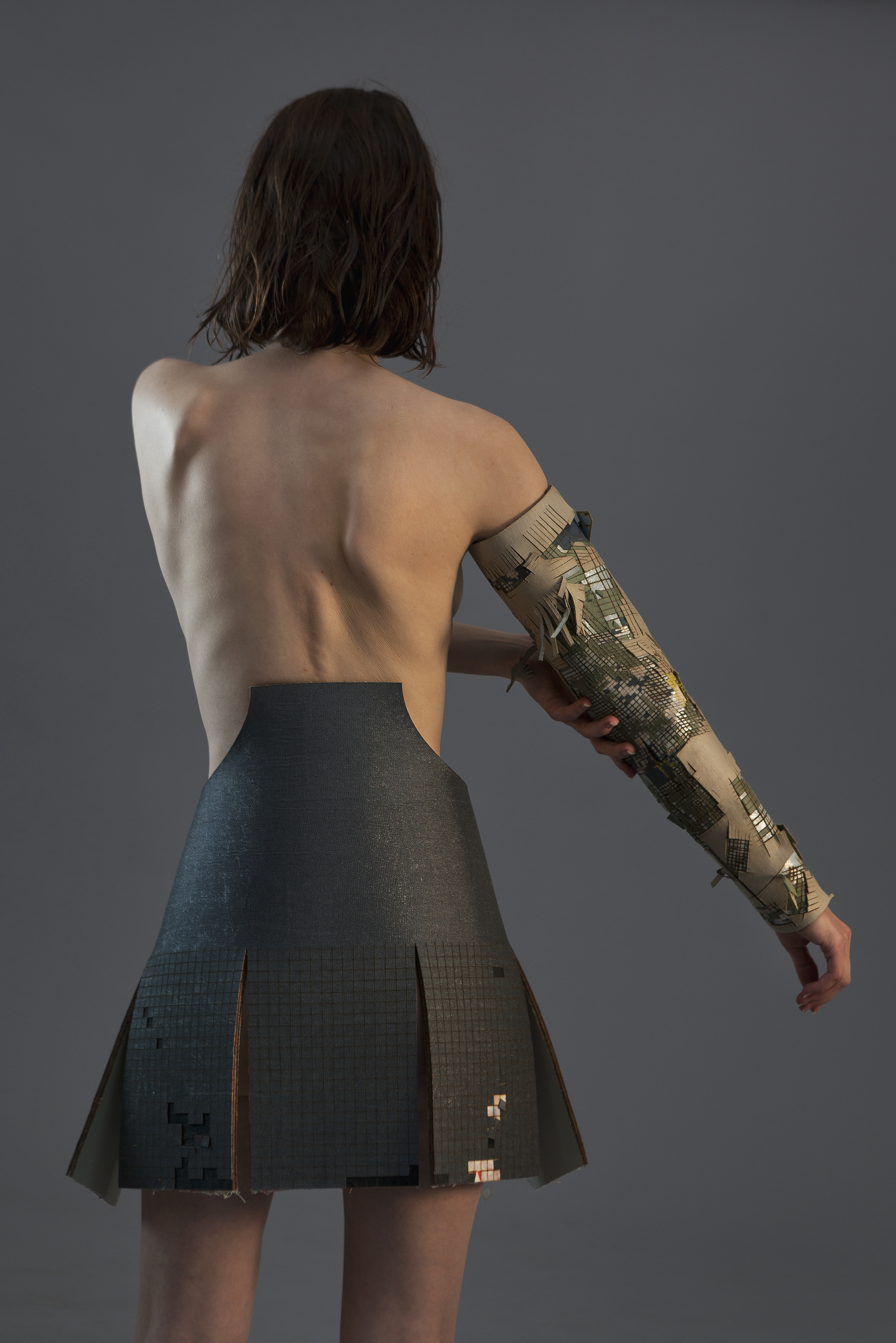 Layer after layer of textile is glued together after they build a material that resembles armour, but dissolves while wearing or already shows damage.